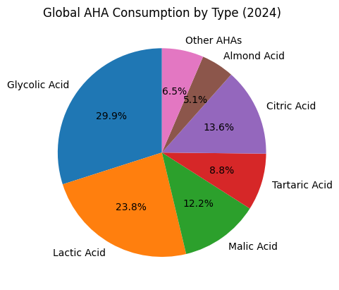 Selain itu, konsumsi global AHA dalam report yang berjudul "Alpha Hydroxy Acid (AHA) Market Size, Share, Growth, and Industry Analysis, By Type, By Applicatio, Regional Insights and Forecast to 2035" AHA masih menduduki peringkat pertama.
